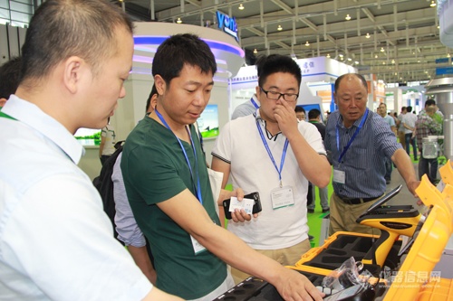 技术人员为参观者演示手持式土壤重金属分析仪Explorer 9000