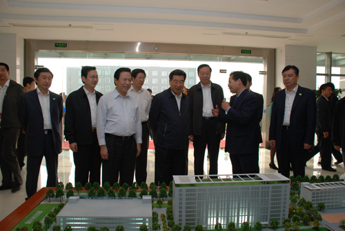 在公司大厅,刘博士向回良玉副总理简要介绍天瑞仪器的发展概况,并且在“天瑞分析测试仪器产业园”沙盘前介绍了这个目前全球分析测试行业内的唯一的产业园,她将在2010年投入使用,这里将生产天瑞仪器旗下所有的光谱、色谱和质谱等各类高精尖的分析测试仪器。