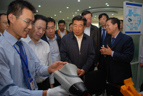 2009年10月19日中央政治局委员、国务院副总理回良玉,在江苏省省委书记梁保华,省长罗志军,苏州市市委书记蒋宏坤,市长阎立,昆山市市委书记张国华和市长管爱国等领导的陪同下,专程来我司考察国产分析测试仪器的产业发展、科技创新等情况,天瑞仪器董事长刘召贵博士热情地接待了各级领导并亲自介绍了天瑞仪器的发展成果。