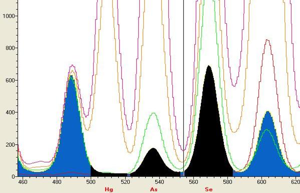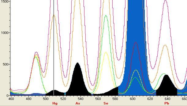 Hg的图谱(虚谱表示不同含量的谱峰)