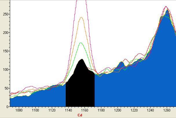 Cd的图谱(虚谱表示不同含量的谱峰)