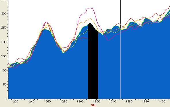 Sb的图谱(虚谱表示不同含量的谱峰)