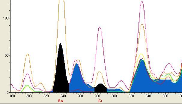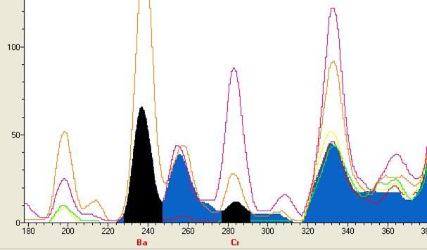 Ba的图谱(虚谱表示不同含量的谱峰)
