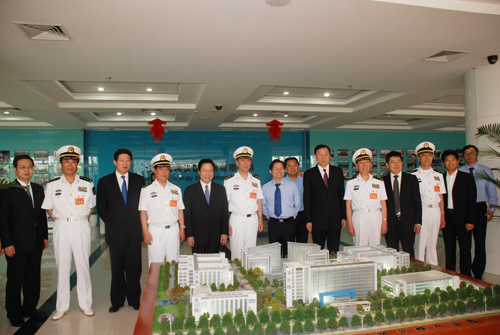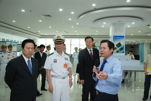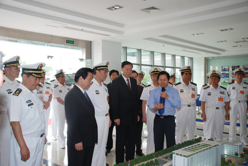 董事长刘博士向海军领导和江苏省领导一行介绍公司情况