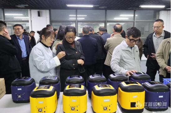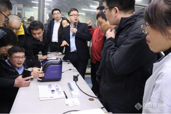 随后,考察团一行移步至公司三楼Cube100S产品生产线。针对炭黑行业的关键检测需求,天瑞技术专家在现场对Cube100S能量色散X荧光光谱仪、EDX3300SPLUS 侧照式单波长X荧光光谱仪两款仪器进行了专场讲解与实机演示,仪器表现出的高精度与高稳定性,给专家领导们留下了深刻印象。他们不时驻足,就仪器的检测原理、技术参数与天瑞工程师进行深入交流。